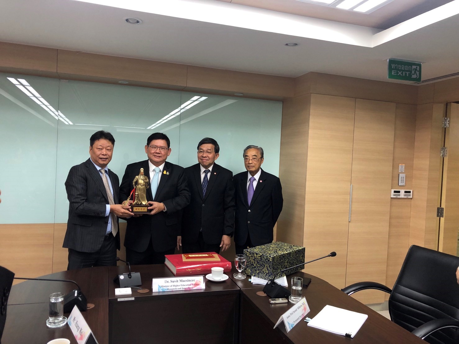 On 2nd October 2019, a discussion was held with Dr. Suvit Maesincee, Minister of Higher Education Science Research and Innovation, Dr. Huang from Ministry of Sciences and Technology, Dr. Jiang Biao, Executive Director of Chinese Academy of Sciences Innovation Cooperation Center (Bangkok), and many sectors discuss about the cooperating missions which will joint in the future between China and Thailand.